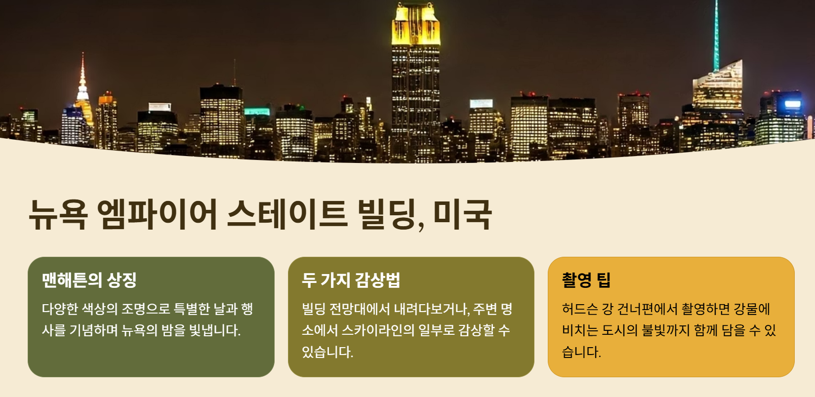 밤하늘 아래 빛나는 랜드마크의 모습은 낮과는 또 다른 매력을 선사하죠. 화려한 조명에 물든 세계적인 명소들은 특별한 감동과 함께 인생 사진을 남길 수 있는 완벽한 배경이 된답니다. 여행을 계획할 때 해가 진 후의 시간까지 고려하신다면, 더욱 풍성한 추억을 만들 수 있을 거예요.