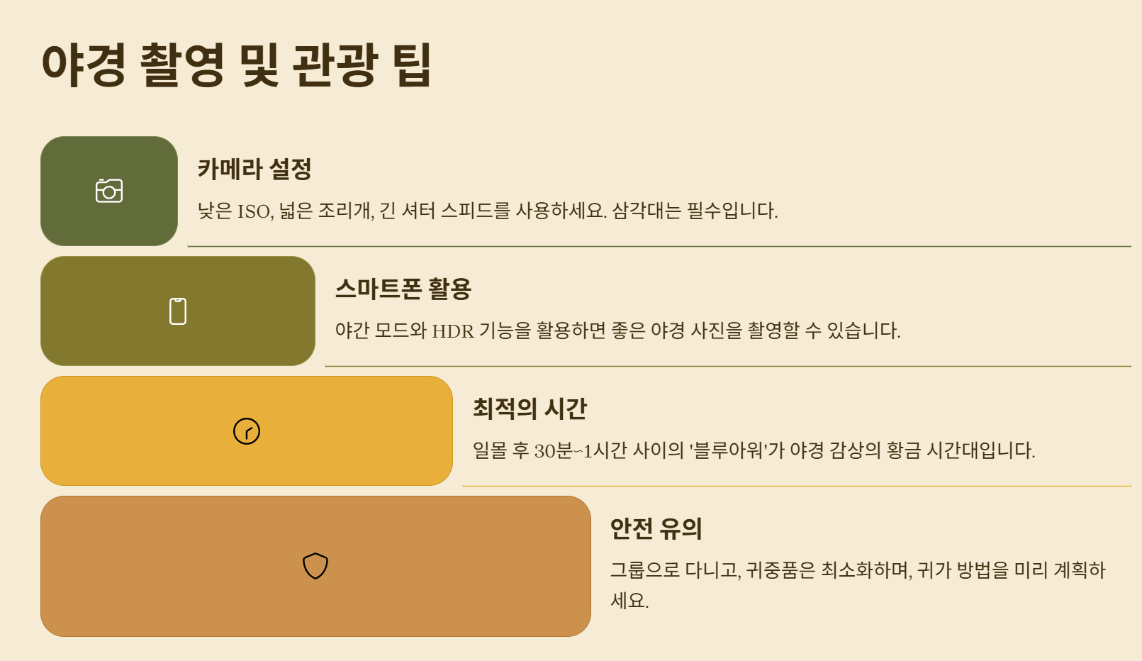 야경 관광 시 안전을 위한 팁이 있을까요?