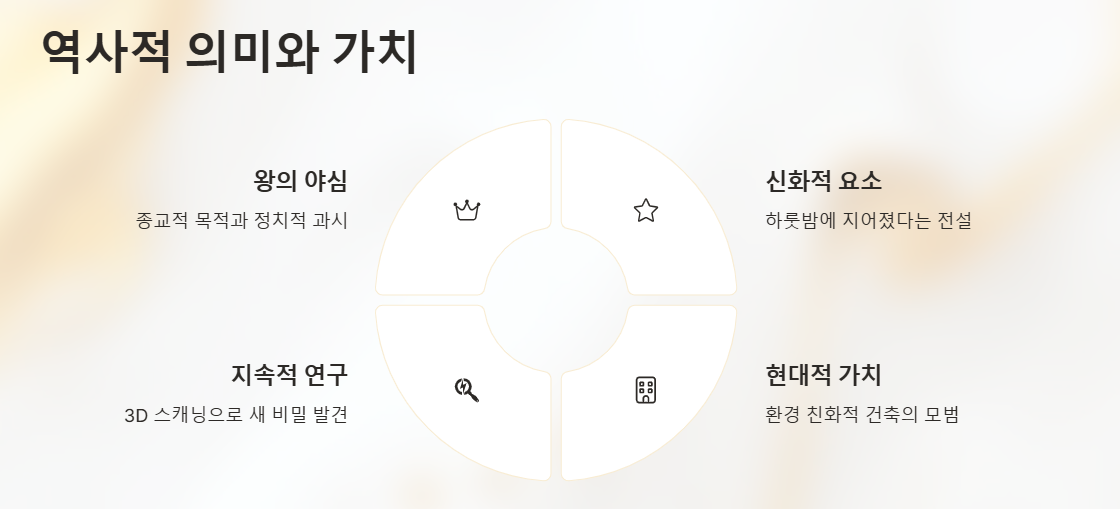 다만 이렇게 정교한 작업을 위해서는 엄청난 시간과 노력이 필요했을 거예요. 하나의 돌을 가공하는 데만도 며칠씩 걸렸을 테니까요. 현대적 관점에서 보면 비효율적일 수도 있지만, 그 덕분에 우리가 지금도 이 아름다운 유산을 볼 수 있는 거겠죠 🎨